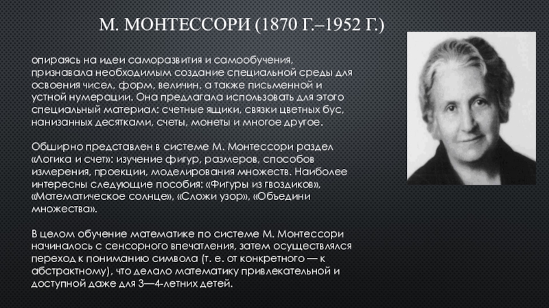 Слайд 8М. Монтессори (1870 г.–1952 г.)