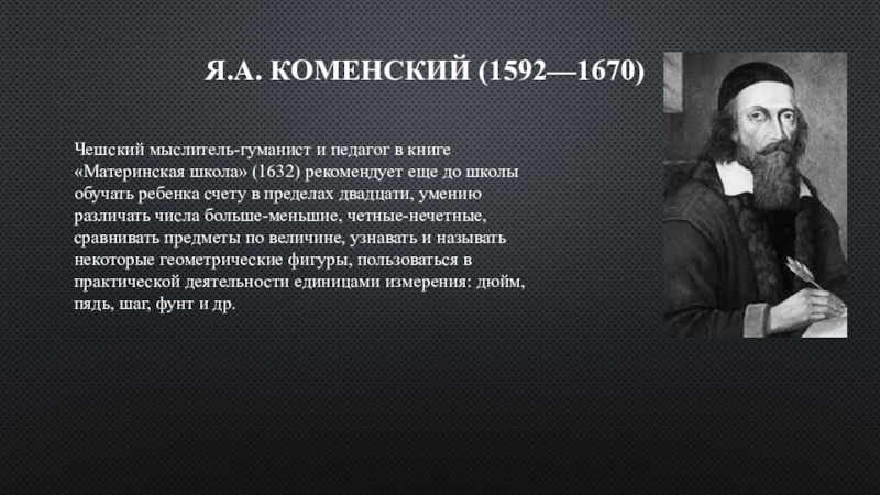 Слайд 3Я.А. Коменский (1592—1670)