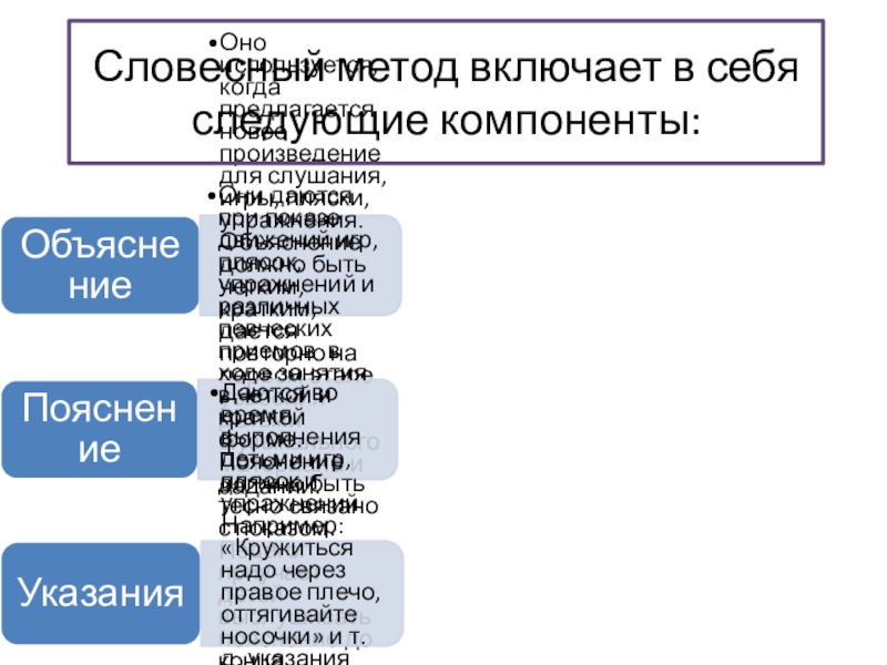 Слайд 8Словесный метод включает в себя следующие компоненты: