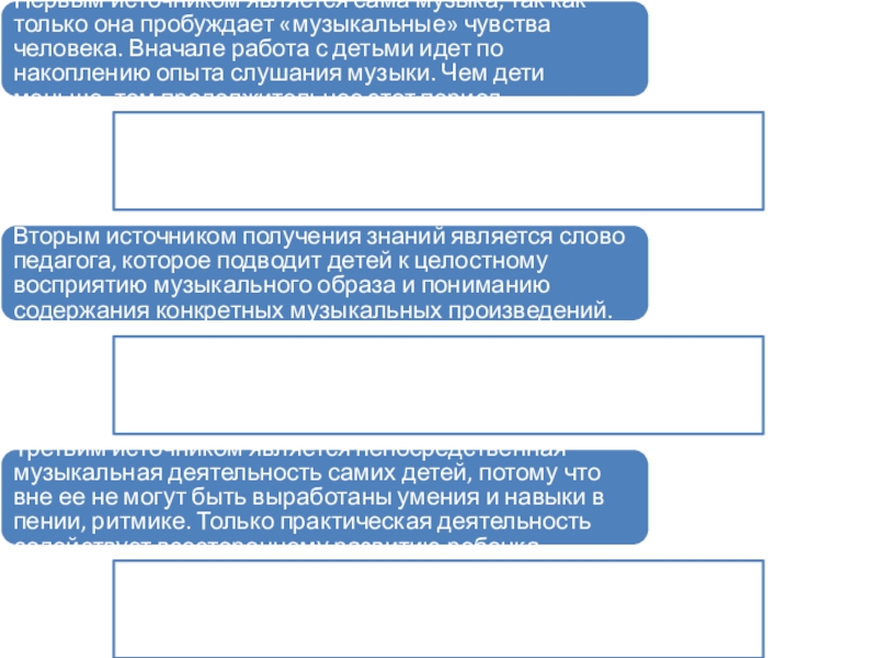 Задачи и содержание музыкального воспитания определяют выбор методов и методических приемов обучения. Выбор методов зависит от того, каким источником будут пользоваться дети при получении знаний.