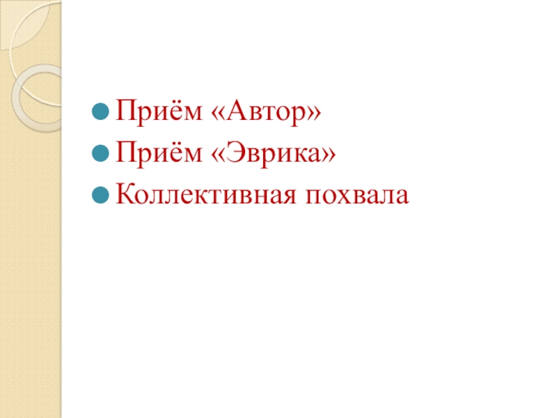 Приём «Автор»Приём «Эврика»Коллективная похвала