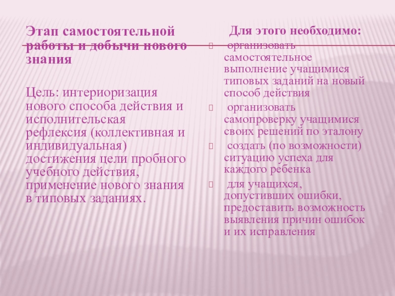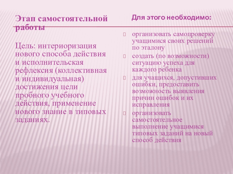 организовать самостоятельное выполнение учащимися типовых заданий на новый способ действия