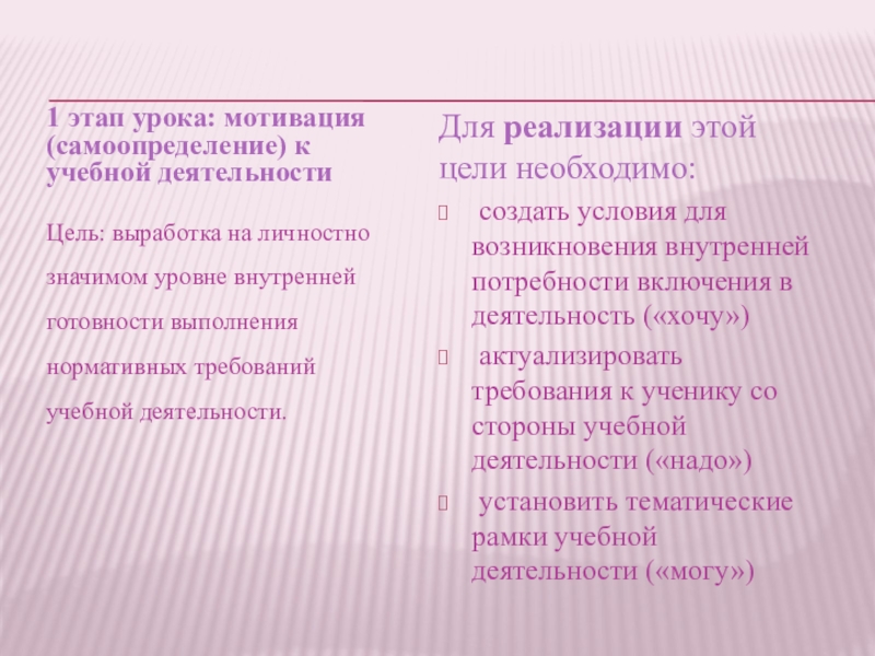 актуализировать требования к ученику со стороны учебной деятельности («надо»)
