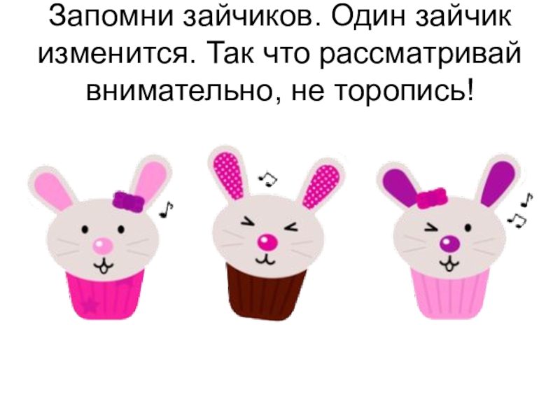 Слайд 22Запомни зайчиков. Один зайчик изменится. Так что рассматривай внимательно, не торопись!