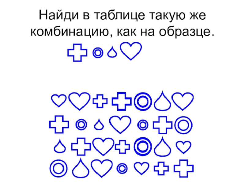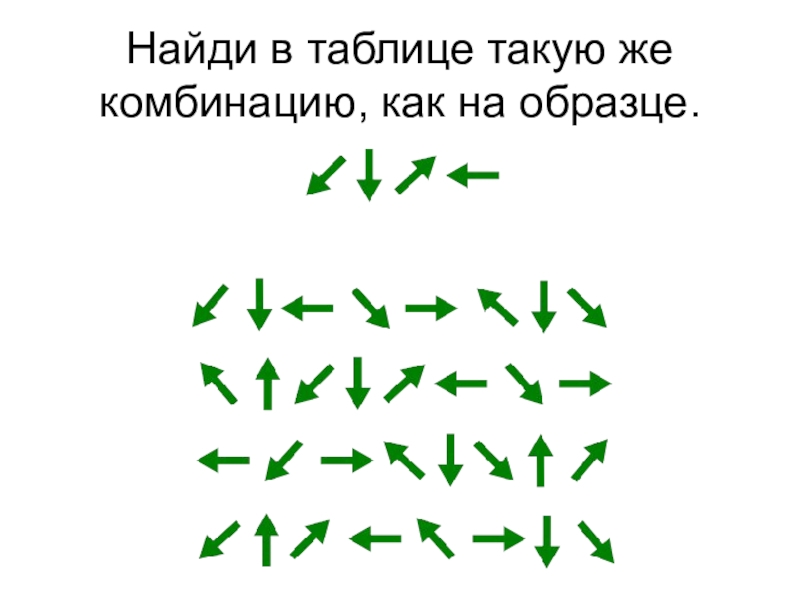 Слайд 11Найди в таблице такую же комбинацию, как на образце.