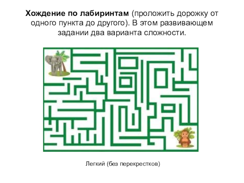 Слайд 4Хождение по лабиринтам (проложить дорожку от одного пункта до другого). В этом
