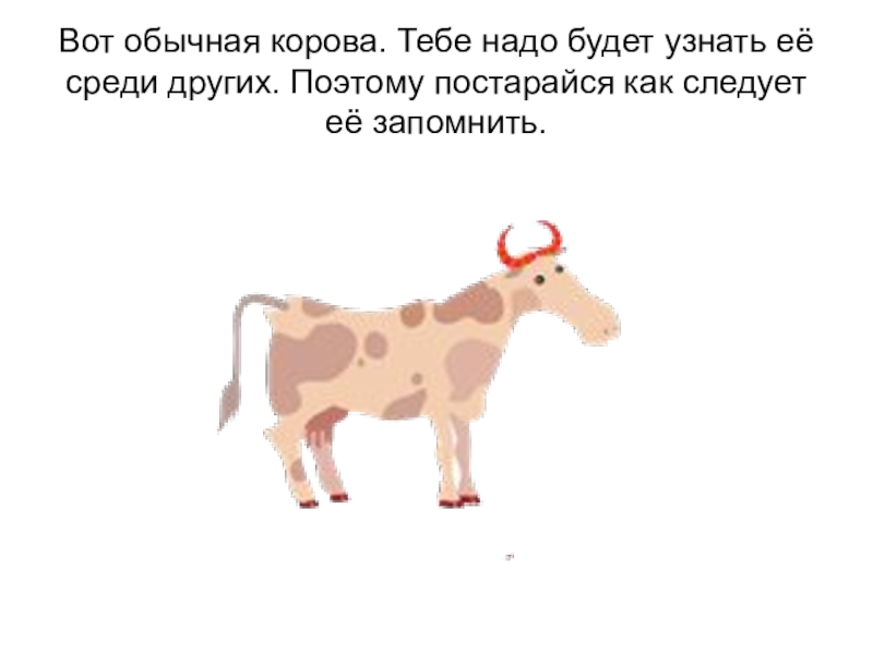 Слайд 18Вот обычная корова. Тебе надо будет узнать её среди других. Поэтому