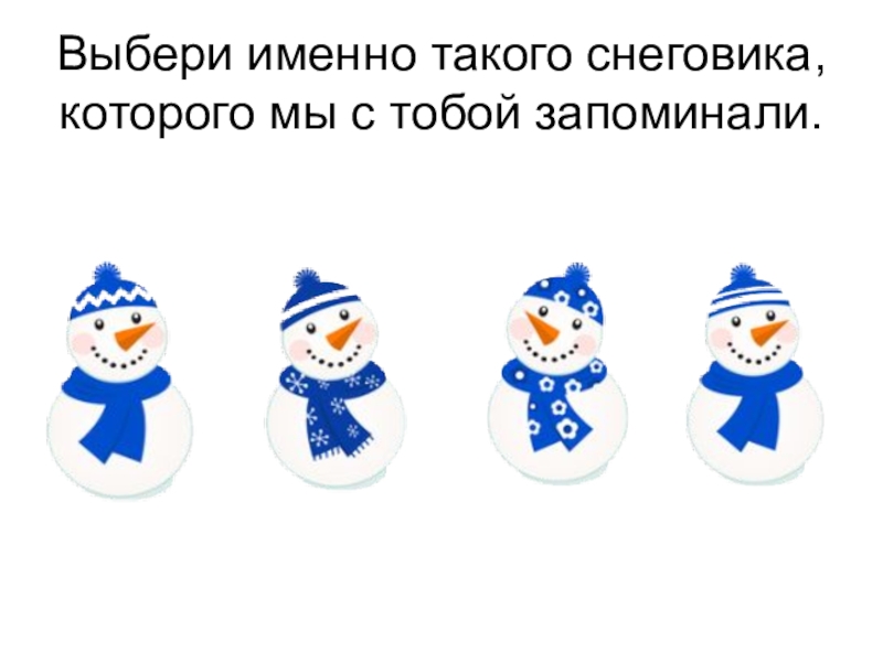 Слайд 17Выбери именно такого снеговика, которого мы с тобой запоминали.