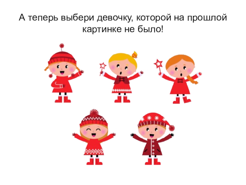 Слайд 21А теперь выбери девочку, которой на прошлой картинке не было!