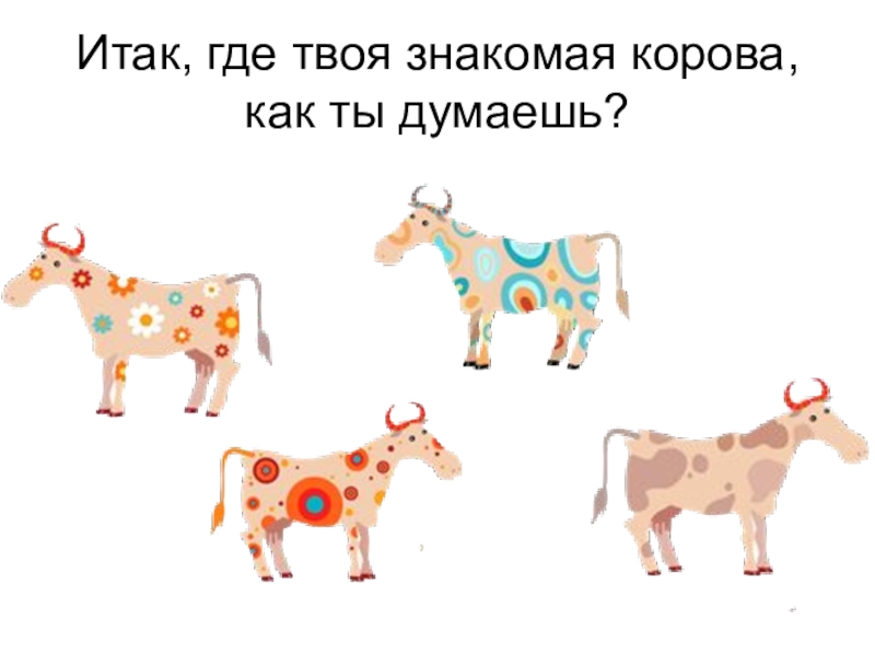 Слайд 19Итак, где твоя знакомая корова, как ты думаешь?