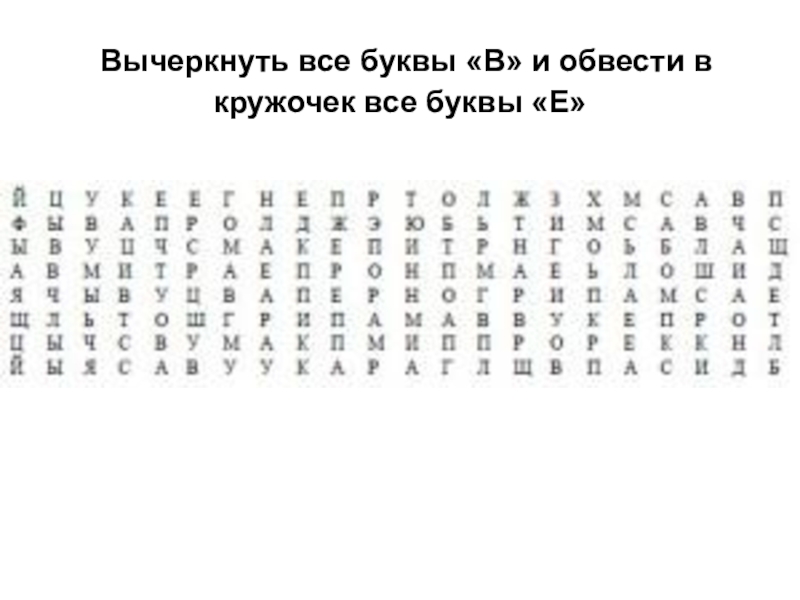 Слайд 3 Вычеркнуть все буквы «В» и обвести в кружочек все буквы «Е»
