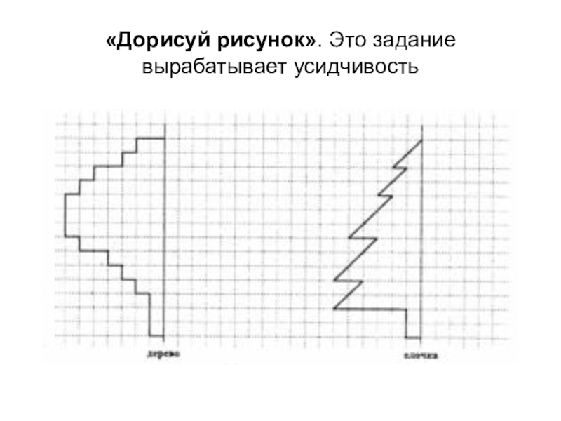 Слайд 6«Дорисуй рисунок». Это задание вырабатывает усидчивость