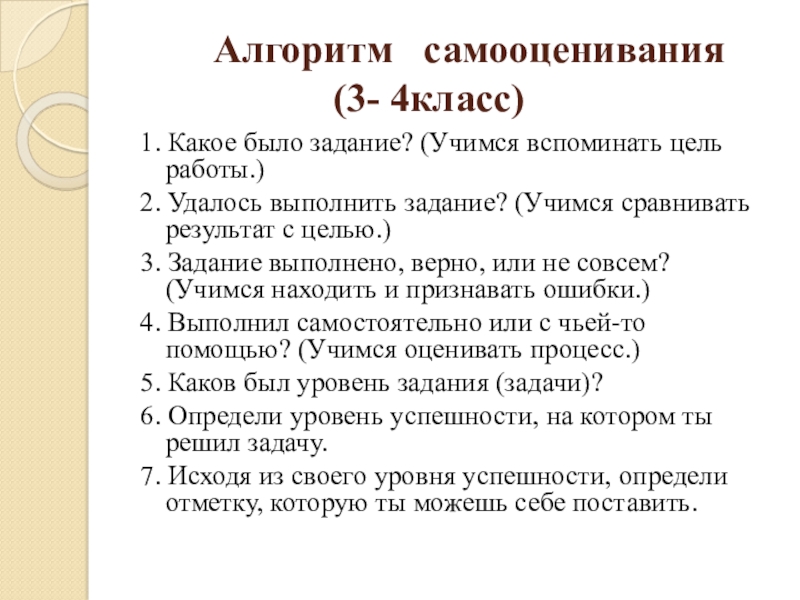 7. Исходя из своего уровня успешности, определи отметку, которую ты можешь себе поставить.