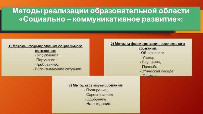 Методы реализации образовательной области «Социально – коммуникативное развитие»:
