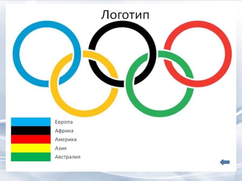 рядами на белом фоне. Кольца обозначают пять континентов, и все они объединены общей идеей олимпийского движения.