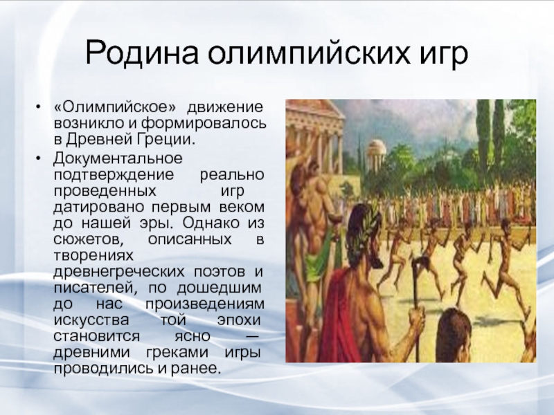 «Олимпийское» движение возникло и формировалось в Древней Греции.