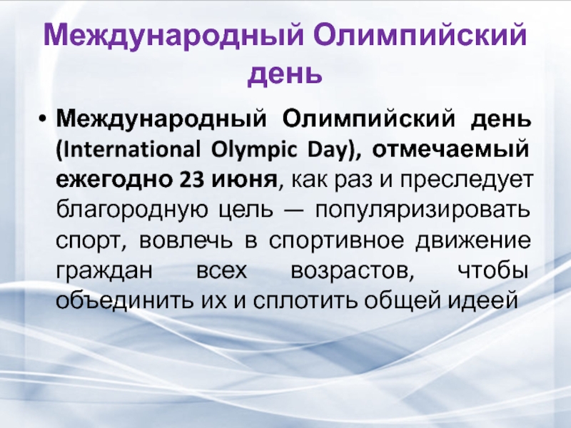 Слайд 6Международный олимпийский день