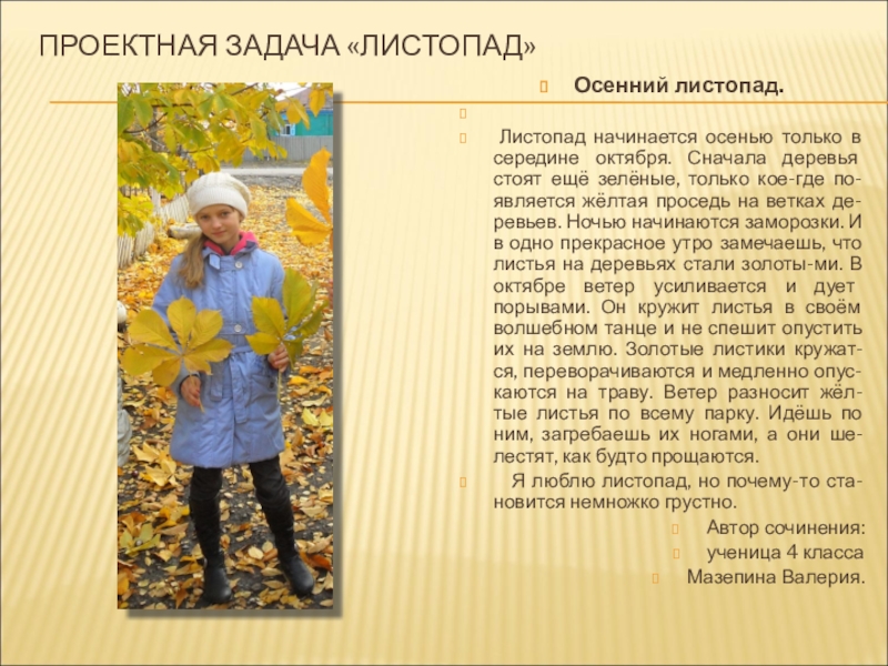 Слайд 10ПРОЕКТНАЯ ЗАДАЧА «ЛИСТОПАД»