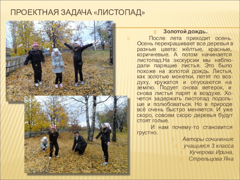 Слайд 13ПРОЕКТНАЯ ЗАДАЧА «ЛИСТОПАД»