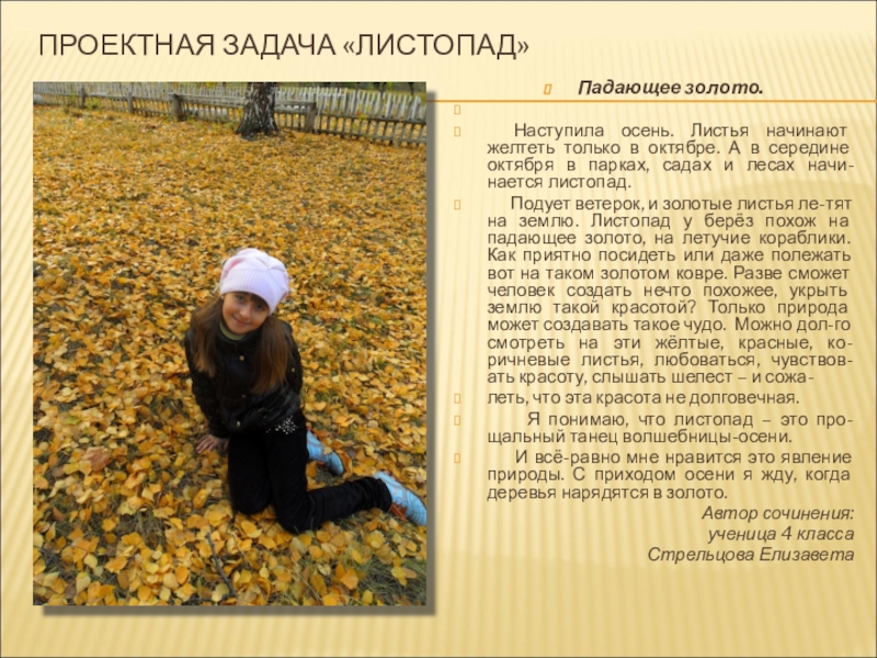 Слайд 9ПРОЕКТНАЯ ЗАДАЧА «ЛИСТОПАД»
