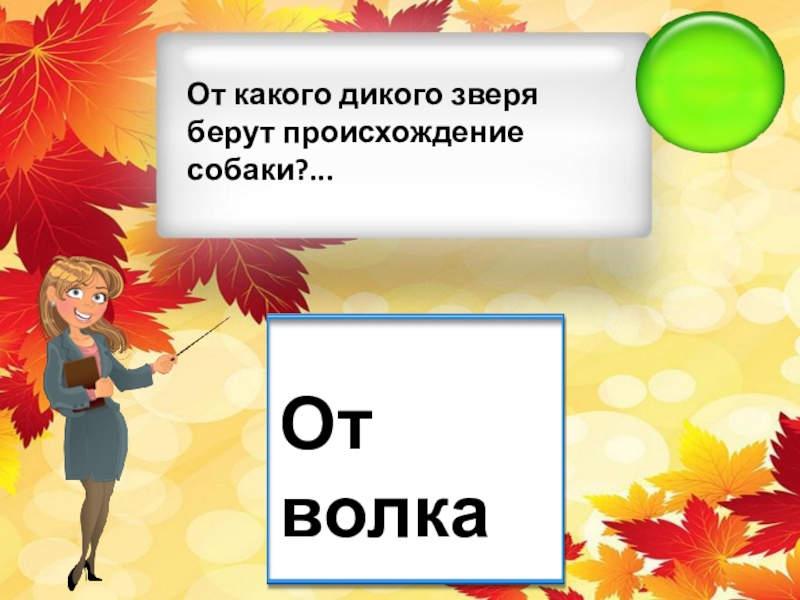 Слайд 6От какого дикого зверя берут происхождение собаки?...