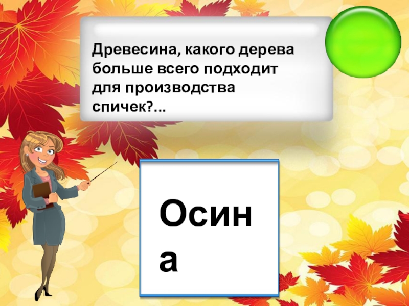 Слайд 9Древесина, какого дерева больше всего подходит для производства спичек?...