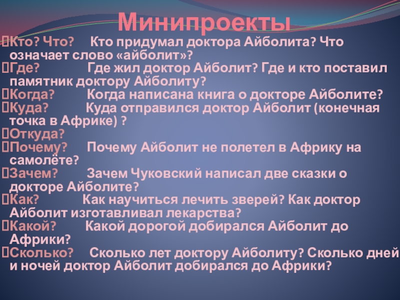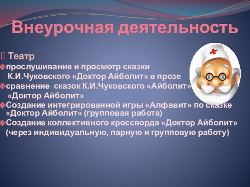 чтение сказки К.И.Чуковского «Доктор Айболит» в прозе (постановка проблемы)