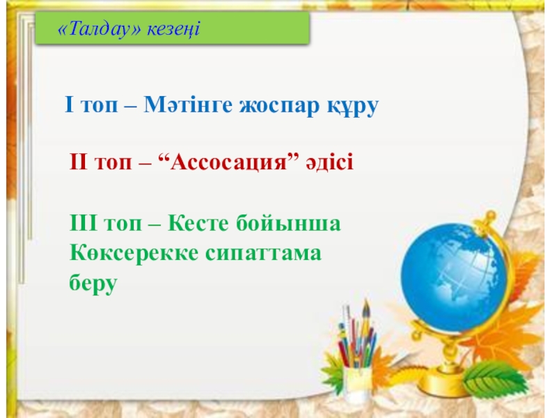 ІІІ топ – Кесте бойынша Көксерекке сипаттама беру