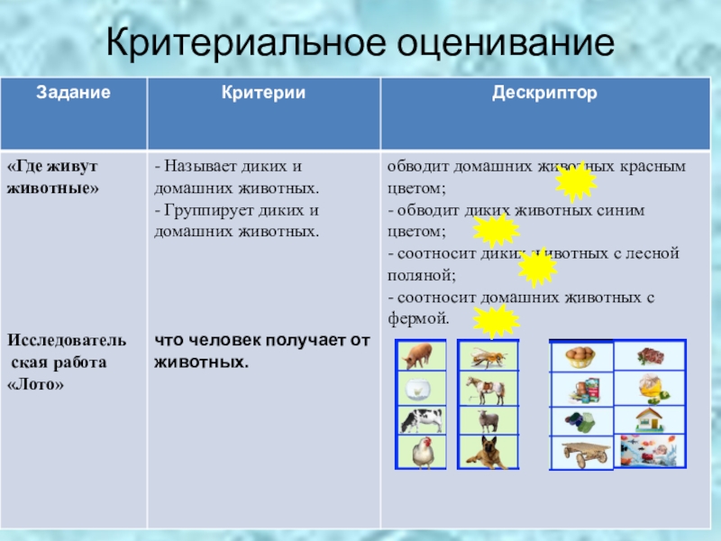 -Исследовательская работа (распределяют каждому животному соответствующее жилище и корм)