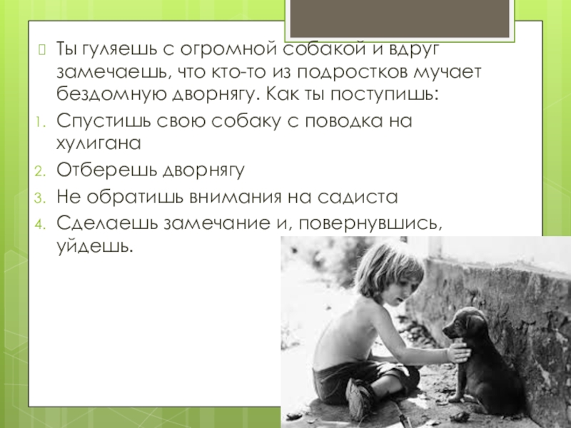 Слайд 7Ты гуляешь с огромной собакой и вдруг замечаешь, что кто-то из
