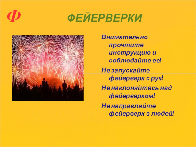 Не направляйте фейерверк в людей!