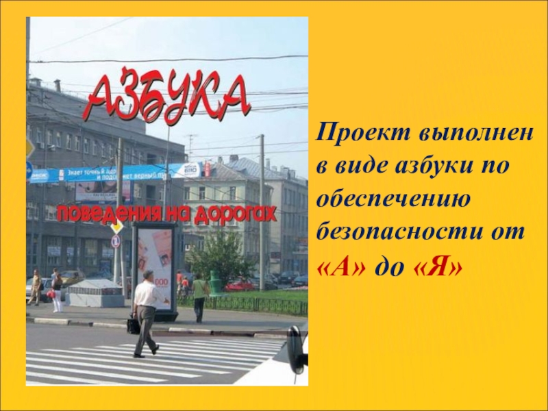 Слайд 3Проект выполнен в виде азбуки по обеспечению безопасности от «А» до