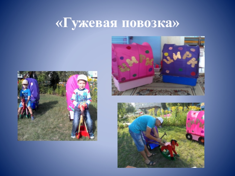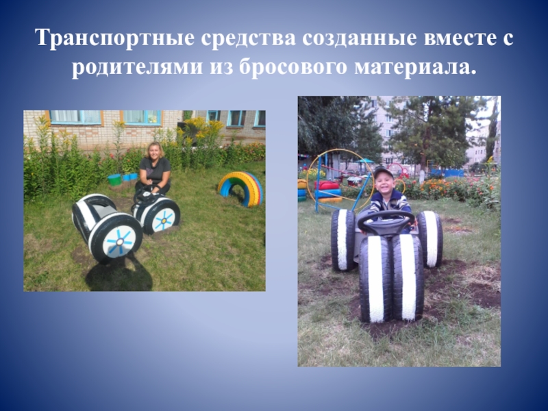 Слайд 30Транспортные средства созданные вместе с родителями из бросового материала.