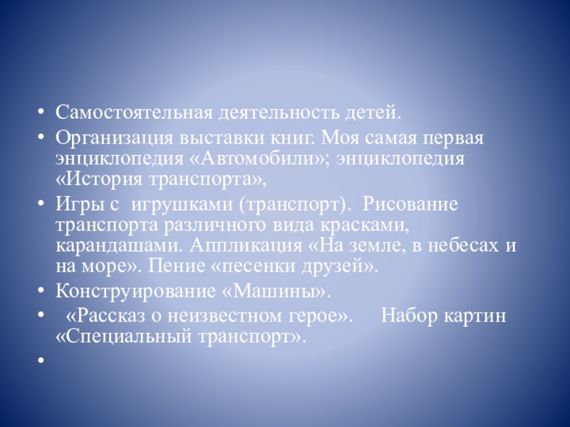5. Подбор литературы и фотографий по теме «Транспорт».