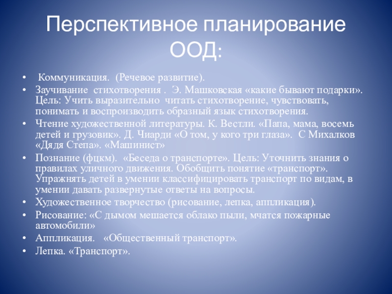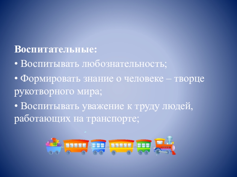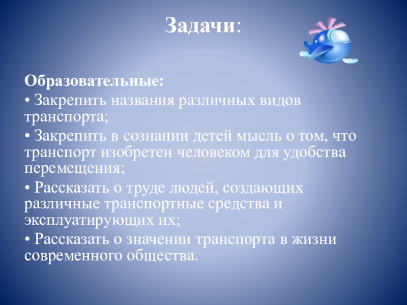 • Рассказать о труде людей, создающих различные транспортные средства и эксплуатирующих их;