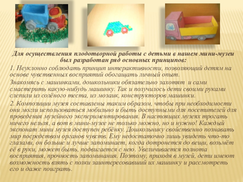 Для осуществления плодотворной работы с детьми в нашем мини-музеи был разработан ряд основных принципов:1. Неуклонно соблюдать принцип