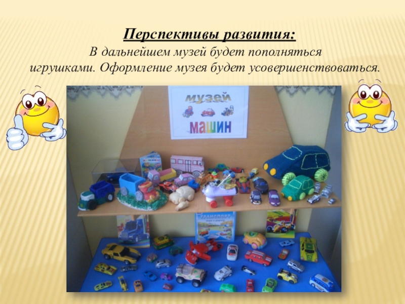 Перспективы развития: В дальнейшем музей будет пополняться игрушками. Оформление музея будет усовершенствоваться.