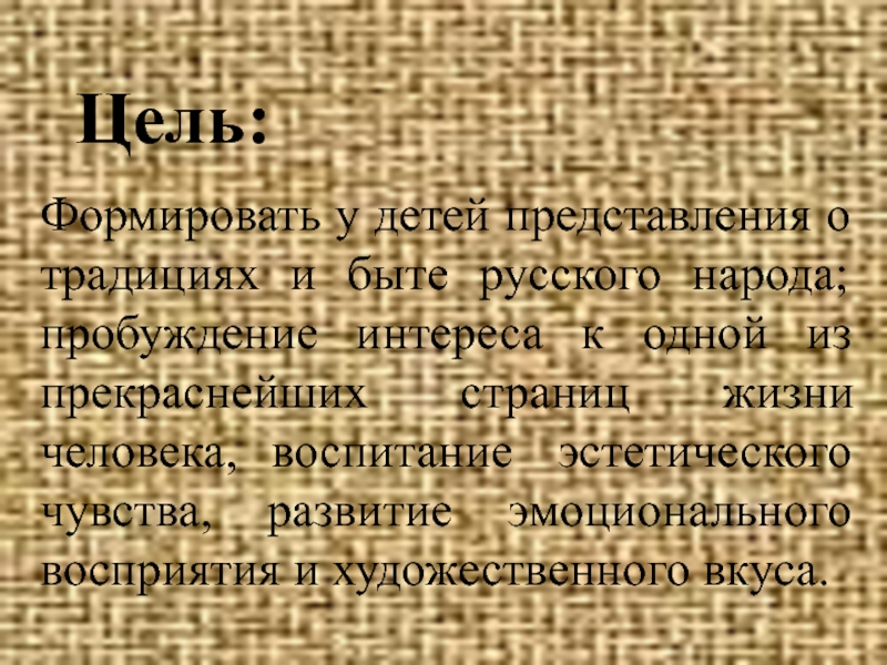 Познакомить детей с особенностями жизни и быта русского народа.