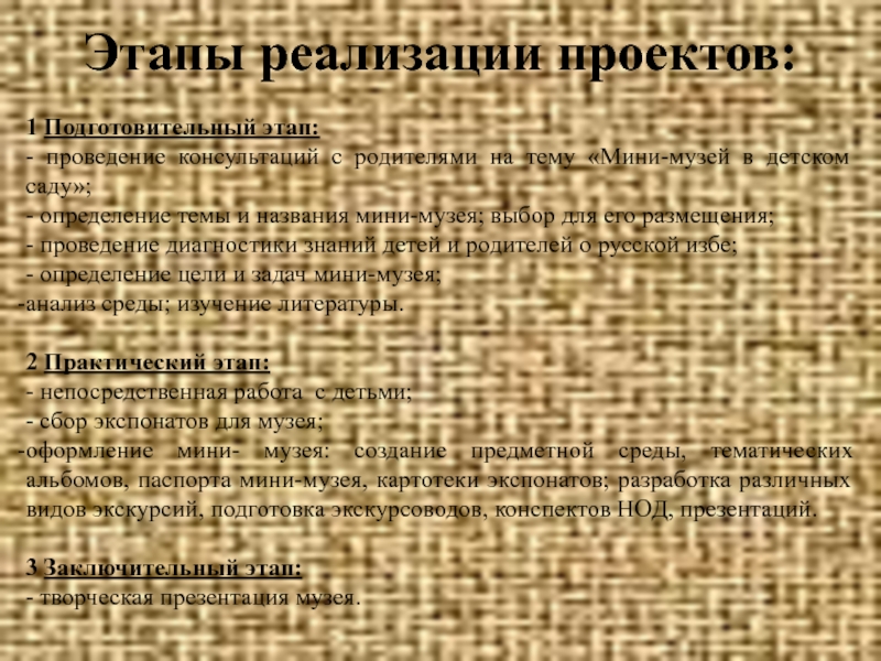 Слайд 14Этапы реализации проектов: