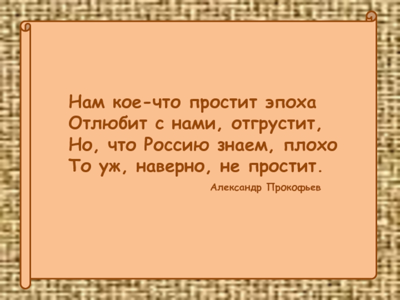 Нам кое-что простит эпоха Отлюбит с нами, отгрустит,