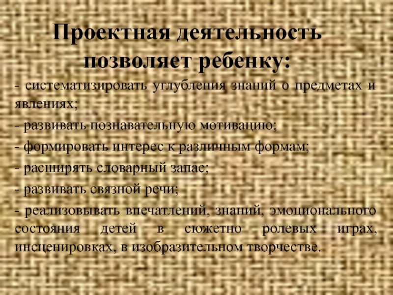 Слайд 15Проектная деятельность позволяет ребенку: