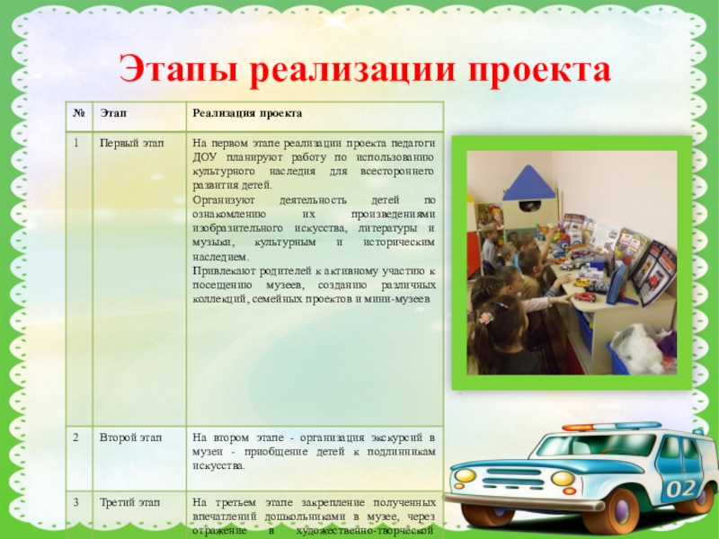 Этапы реализации проекта: