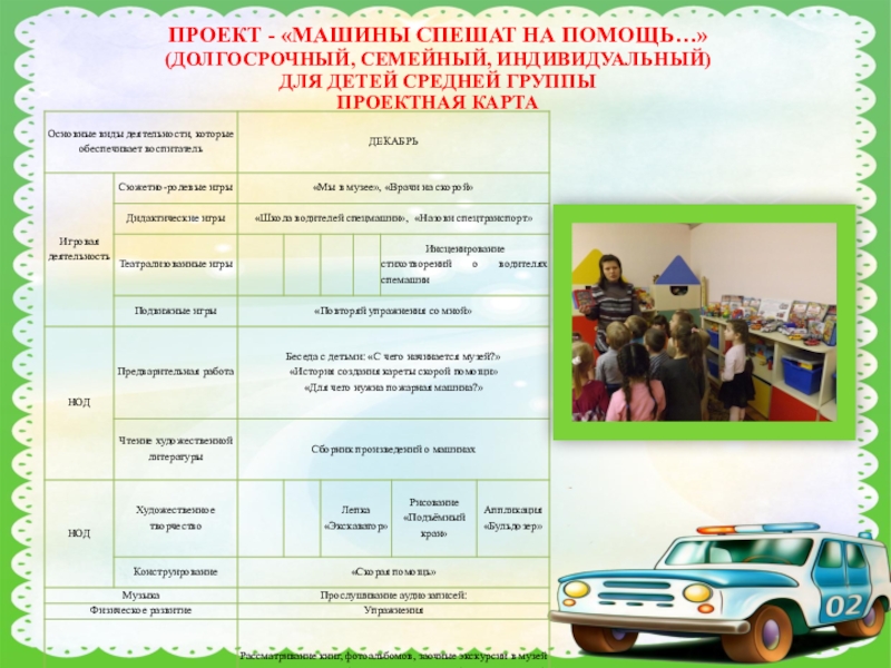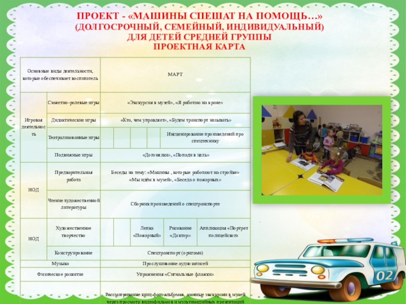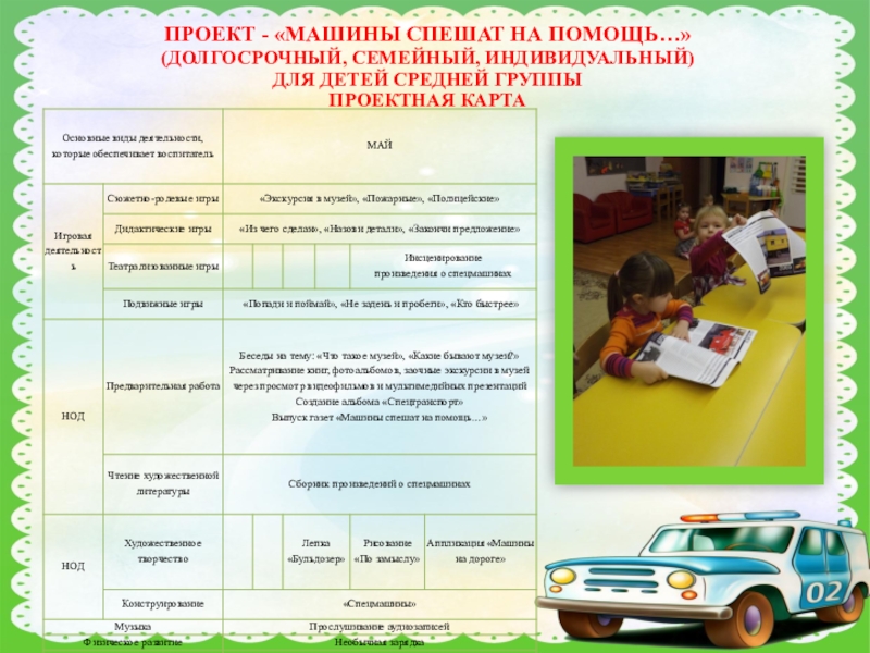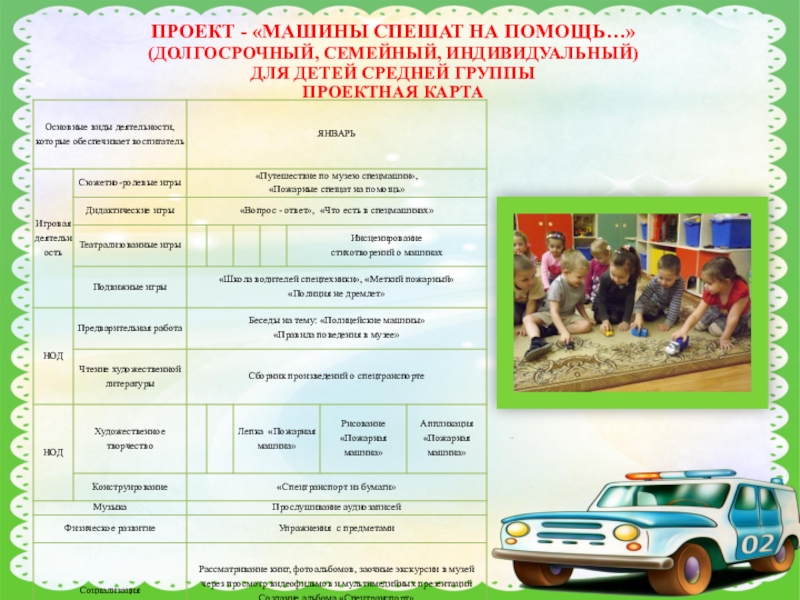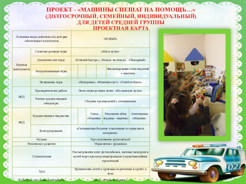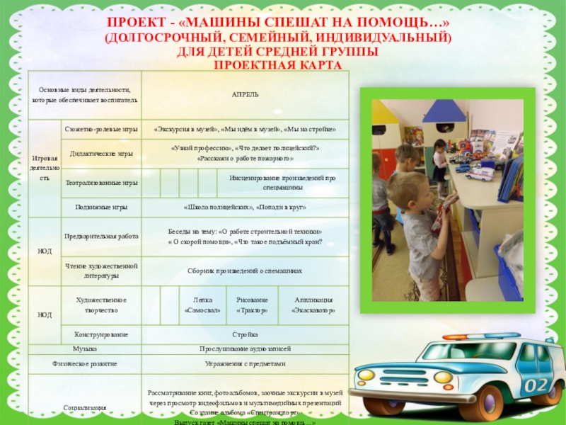 ПРОЕКТ - «МАШИНЫ СПЕШАТ НА ПОМОЩЬ…»