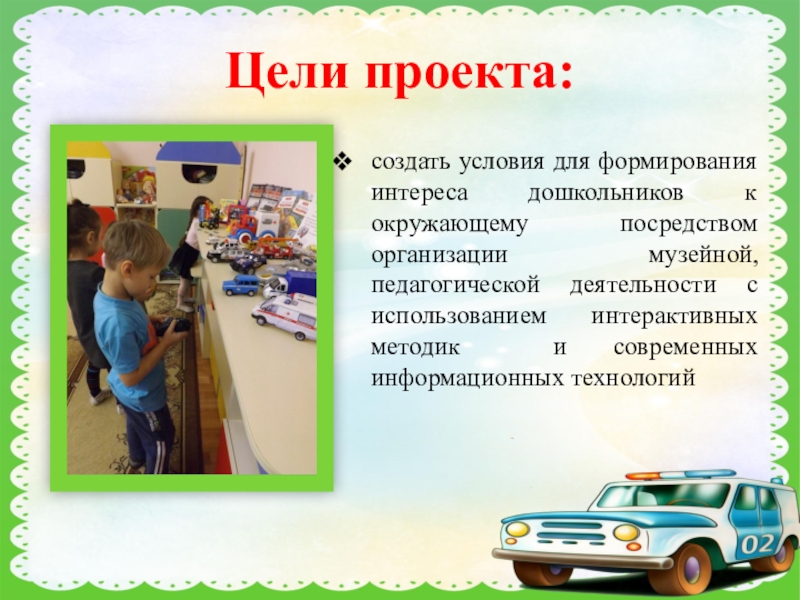 создать условия для формирования интереса дошкольников к окружающему посредством организации