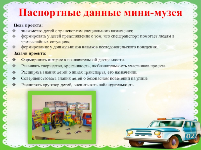 детей представление о том, что спецтранспорт помогает людям в чрезвычайных ситуациях;