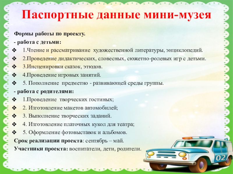 Срок реализации проекта: сентябрь – май.