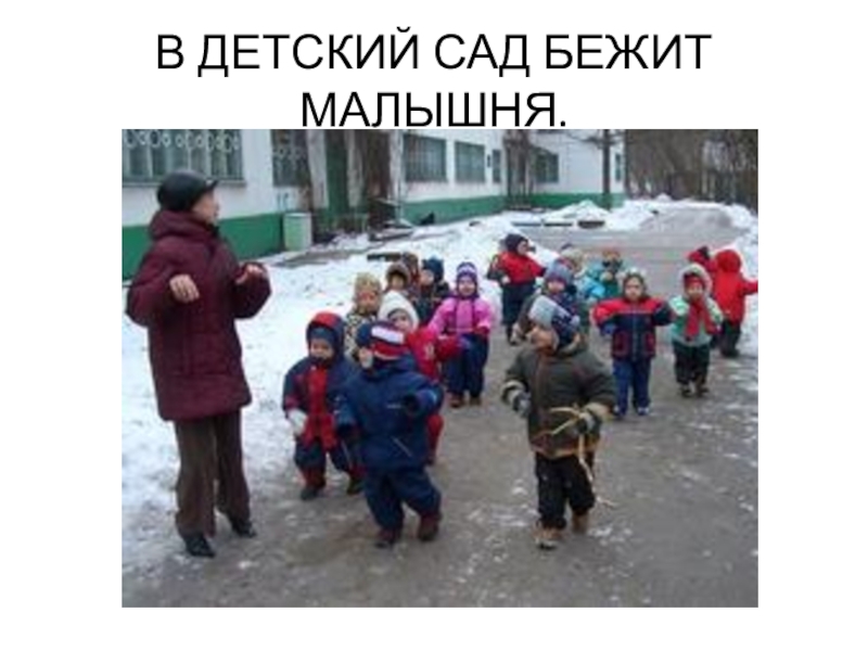Слайд 5В ДЕТСКИЙ САД БЕЖИТ МАЛЫШНЯ.