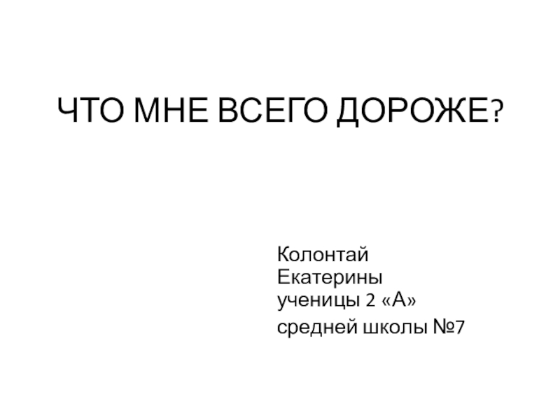 ЧТО МНЕ ВСЕГО ДОРОЖЕ?Колонтай Екатерины  ученицы 2 «А»средней школы №7