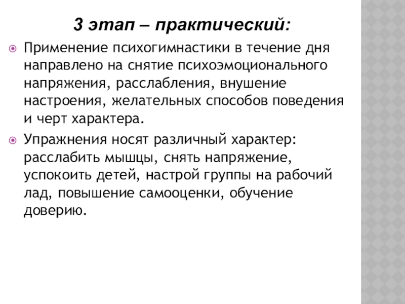 Применение психогимнастики в течение дня направлено на снятие психоэмоционального