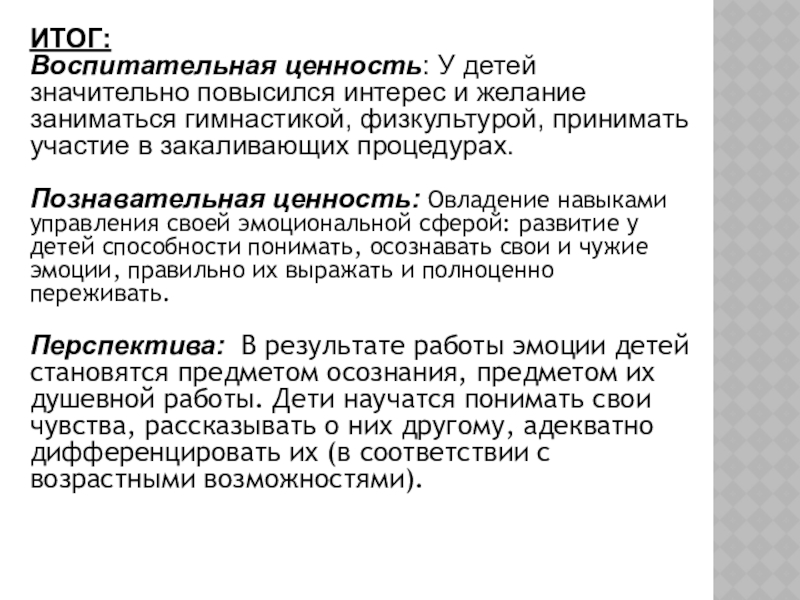 Воспитательная ценность: У детей значительно повысился интерес и желание заниматься гимнастикой,